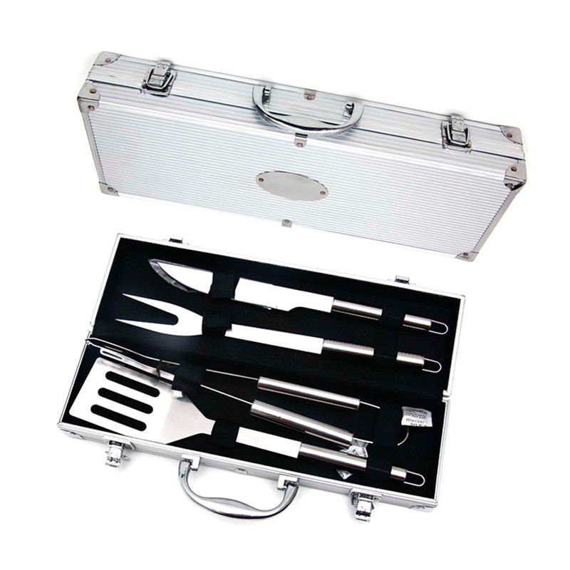 Kit churrasco maleta com 4 peças, possibilita a gravação na chapa a laser.