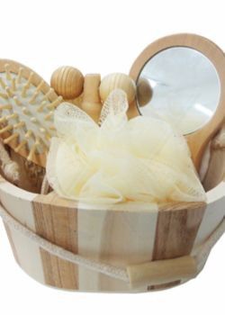 S102 - Kit banho com 5 peças, material de madeira ecológica.