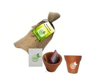 Kit plantio com saco de juta personalizado, acompanha 1 vasinho personalizado em 1 cor, terra, papel semente personalizado, pazinha, saco de juta e tag personalizada em 4 cores.